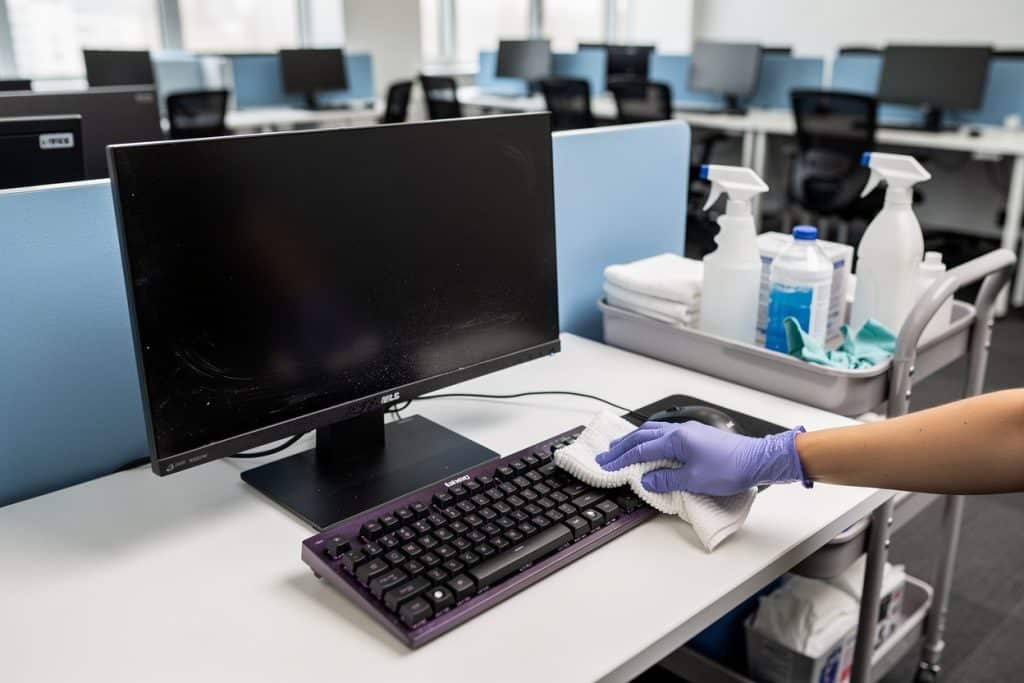 Solliciter un prestataire spécialisé garantit l’utilisation de produits désinfectants adaptés, un protocole rigoureux et la rapidité de traitement même en grand volume. Cela libère les collaborateurs de tâches chronophages, tout en assurant une meilleure élimination des virus et bactéries grâce à l’expertise acquise en nettoyage professionnel, aussi bien pour les périphériques (clavier, souris, écran, imprimante) que pour l’ensemble des postes de travail.